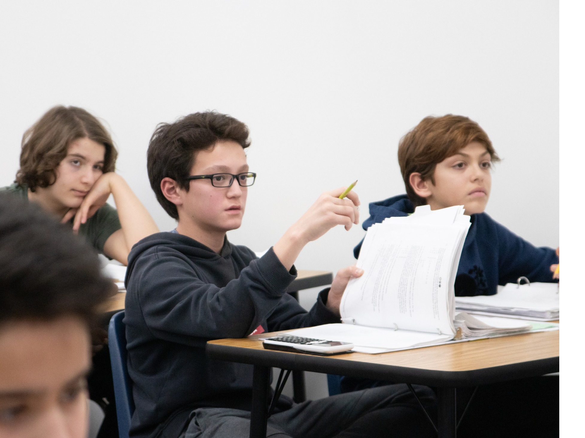 The Grade 7 curriculum has a focus on problem solving through 12 topics such as patterns in counting shapes, Pascal’s Triangle, number bases, combinations, and measurement, among others. Students also work on some of the most challenging types of questions found among contest-level math problems in their independent assignments known as Challengers. In this grade, we foster students’ individual accountability as well as their teamwork accountability. In class, students are empowered to ask questions, present solutions, and take the risks that are necessary for higher learning. Through the intense problem solving, they learn to ask the right questions, pay attention to detail, show perseverance, and to concentrate on detailed work. All grade 7 students write an examination at the end of the year. The overall curriculum is engaging to our Grade 7 students and the weekly 1.5-hour classes are fast-paced.